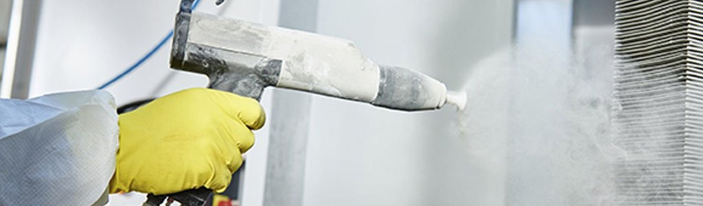 Горизонтально расположенный на конвейере профиль при помощи системы напыления равномерным слоем покрывается порошковой краской в электростатическом поле. Электрический ток, проходящий через профиль, обеспечивает прилипание порошка к поверхности. Далее профиль направляется в печь, где по заданным параметрам происходит полимеризация порошковой краски на поверхность.